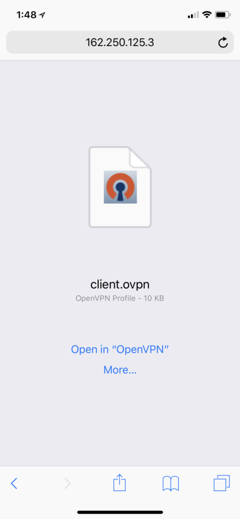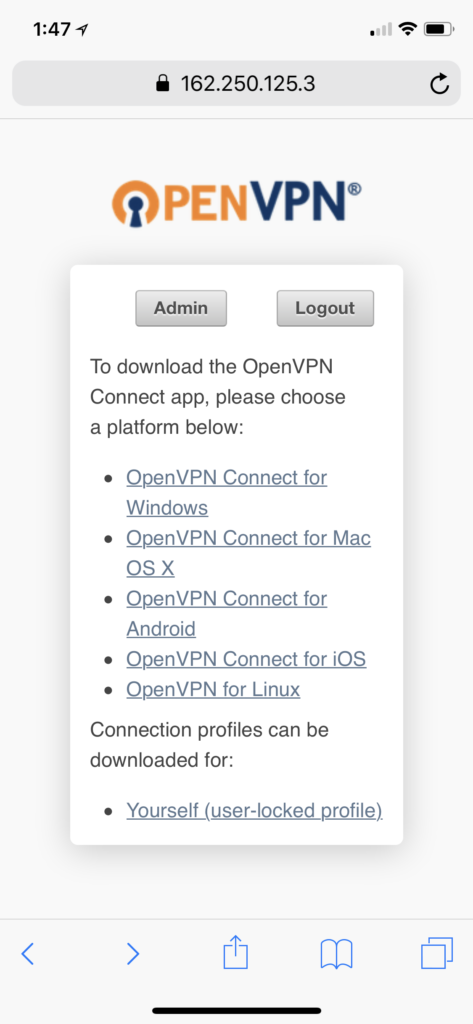 If you’re visiting this page with an Android phone or an iOS device, download one of the recommended OpenVPN clients on your device.