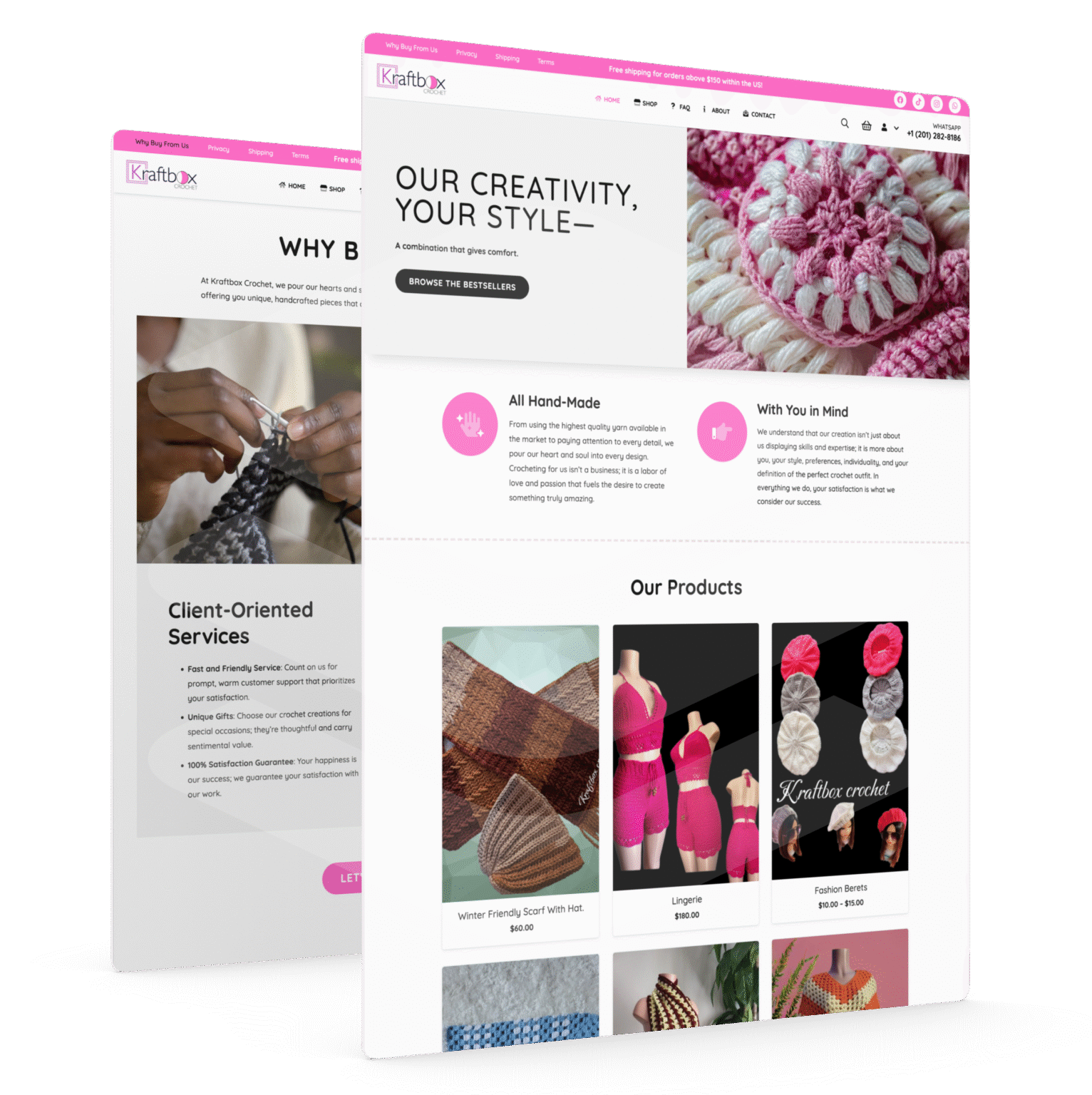 KraftbocCrochet.com is a custom-designed eCommerce website built on WooCommerce. It is integrated with online payment gateways to facilitate purchases. We also designed the logo and developed the website content.
