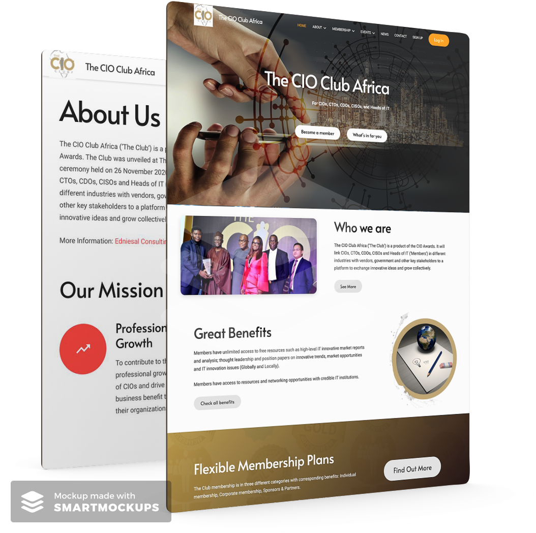 TheCIOClubAfrica.com is a custom website with membership features. The website allows users registration with online payment. There are specific features and content only available to logged-in members.